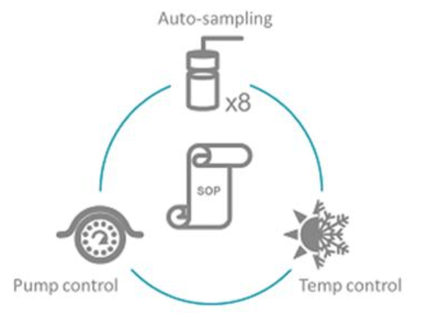 The qCell T series devices feature accurate pump and temperature control, and it can be additionally equipped with auto-sampling functions.