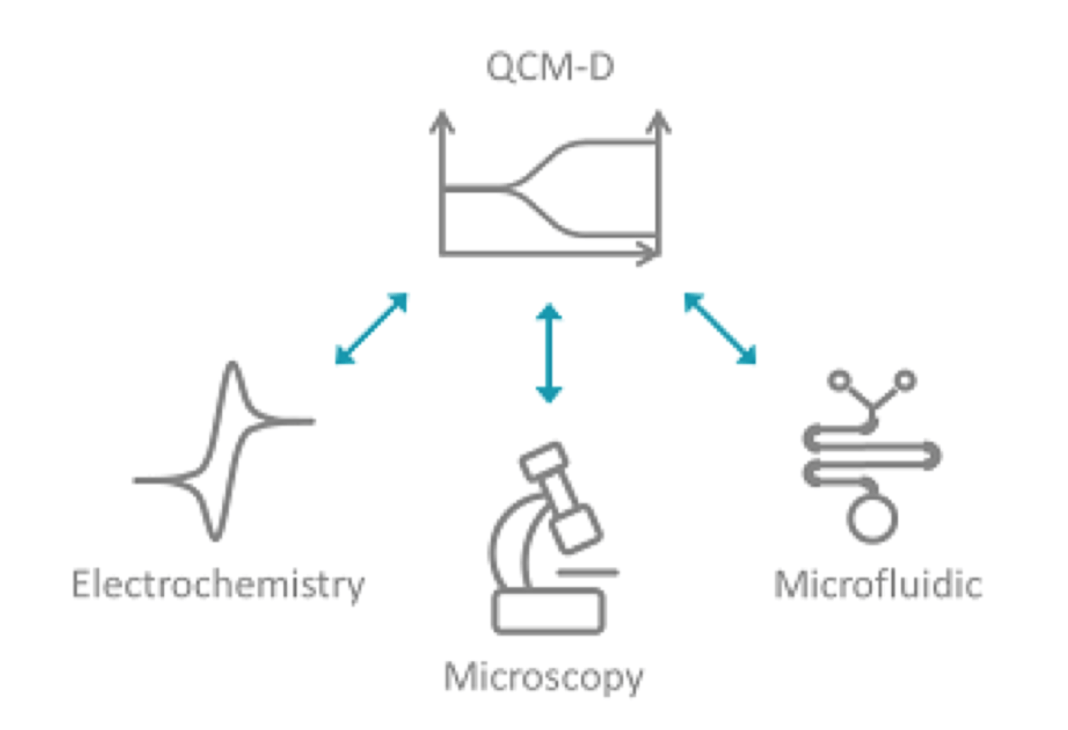 qCell T eChem and qCell eChem combines quartz mass sensing with advanced electrochemistry measurements.