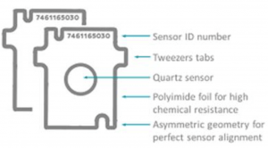 The quartz sensor is mounted on a thin asymmetric polymer foil, ensuring the perfect orientation alignment in the open architecture of the flow cell.